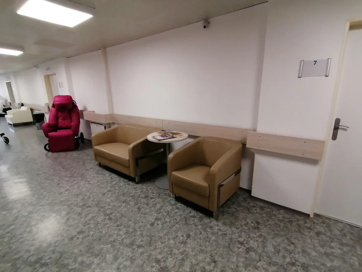 Rekonstrukce interiérů nemocnice následné péče v Praze přinesla modernizaci a zvýšení komfortu pro pacienty i personál. V rámci této rozsáhlé přestavby byly zrenovovány chodby, sociální zařízení a koupelny, kuchyňky pro pacienty, pokoje i sesterny. Nové chodby nyní nabízejí příjemnější prostředí s moderním osvětlením a orientačními prvky.