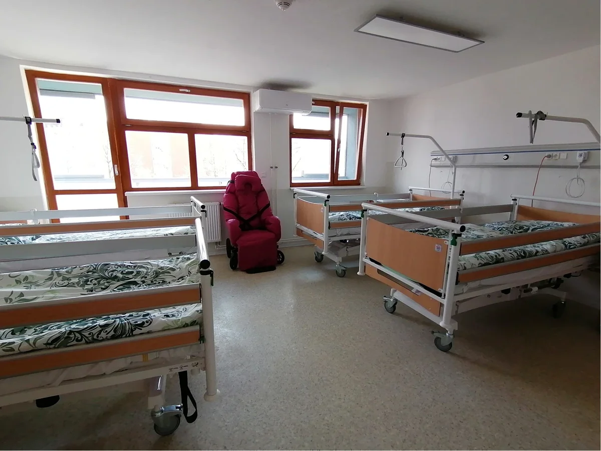 Sociální zařízení a koupelny byly kompletně přestavěny s důrazem na hygienu a bezpečnost. Kuchyňky pro pacienty získaly nové spotřebiče a ergonomické uspořádání, což usnadňuje jejich používání. Pokoje byly vybaveny novým nábytkem a lůžky, které zvyšují komfort pacientů.